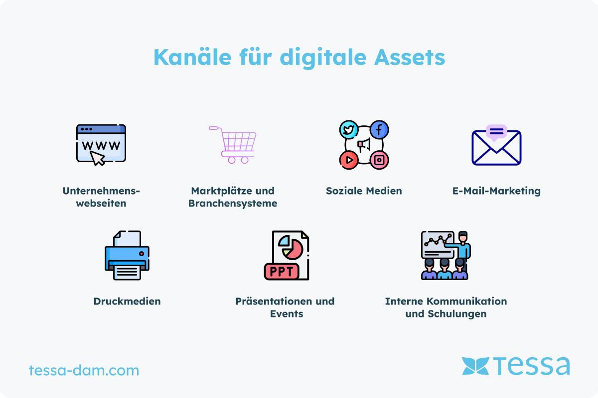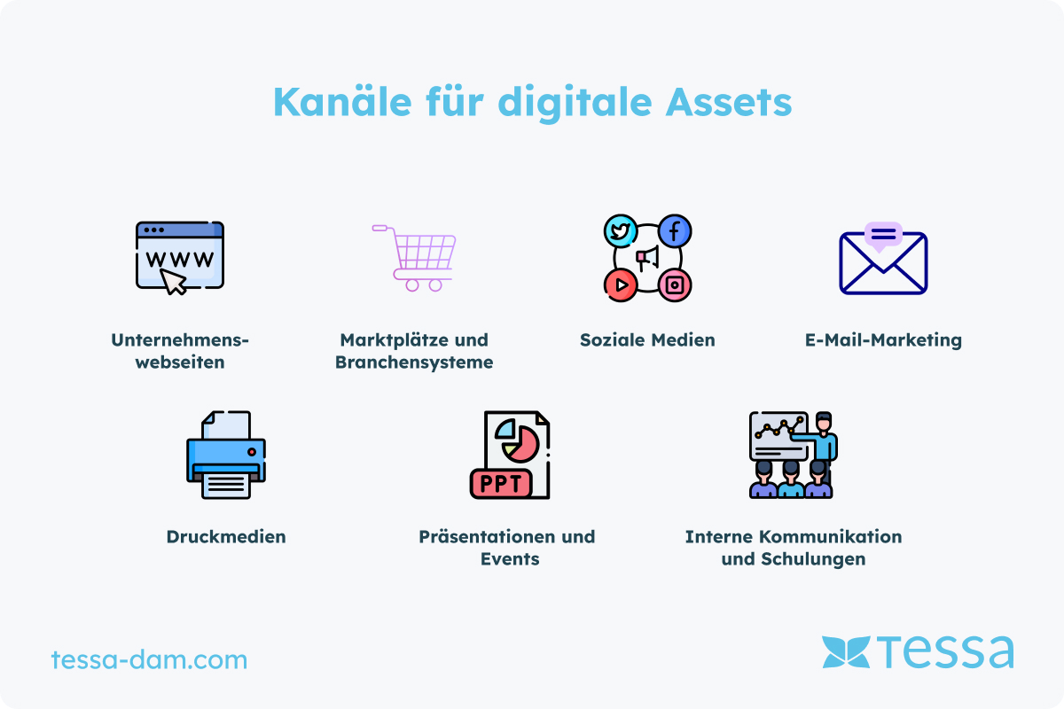 Du kennst nun die verschiedenen Rollen und Abteilungen, die an der Beschaffung und Erstellung von Bildern und Dokumenten beteiligt sind. Nun ist es an der Zeit, sich die Zielsysteme anzusehen, in denen diese digitalen Assets platziert und verwendet werden sollen. Die effiziente Nutzung und Platzierung Deiner digitalen Inhalte ist entscheidend für den Erfolg Deiner Marketing- und Kommunikationsstrategien. Hier sind die wichtigsten Zielsysteme und Verwendungszwecke für Deine Assets: