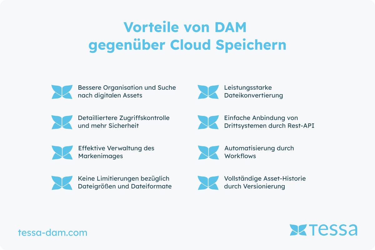 Vorteile von DAM gegenüber Cloud Speicher