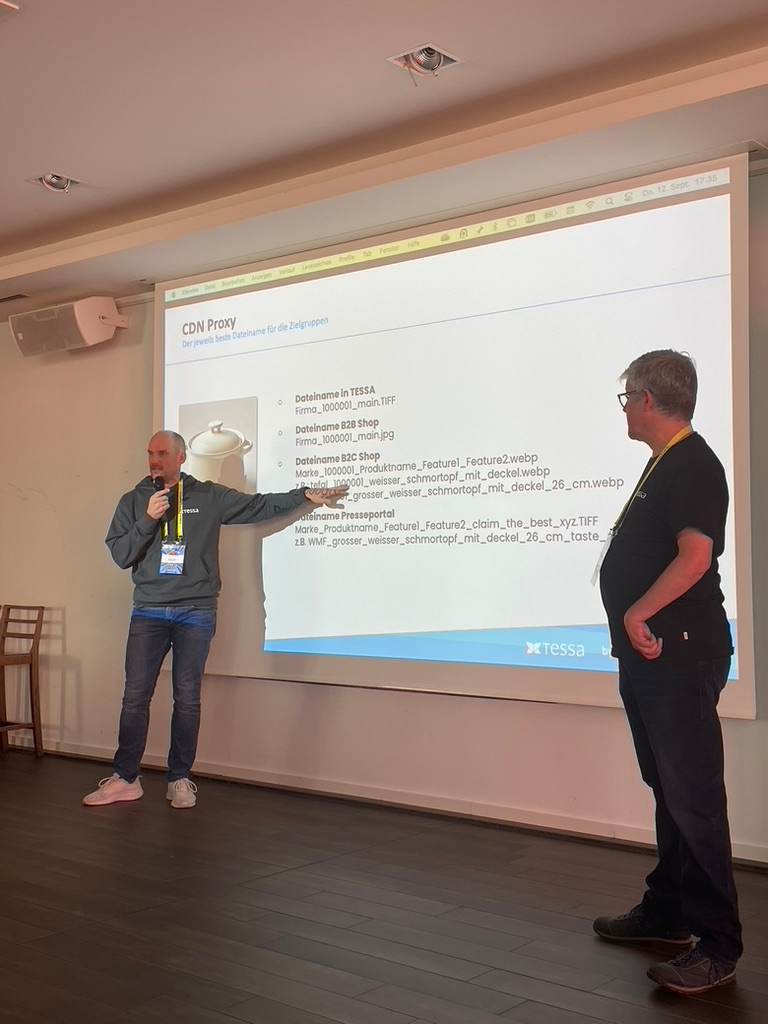 Torsten Herbert (CEO) und Andreas Werner von EIKONA Media, die Firma hinter TESSA DAM, führten die Gäste durch die neuesten Entwicklungen im Digital Asset Management. Vom Asset Integration Tool (AIT) bis hin zur KI-Hintergrundentfernung – der Vortrag zeigte, wie TESSA den Digital Asset Management Prozess auf ein neues Level hebt. Slides zum Vortrag