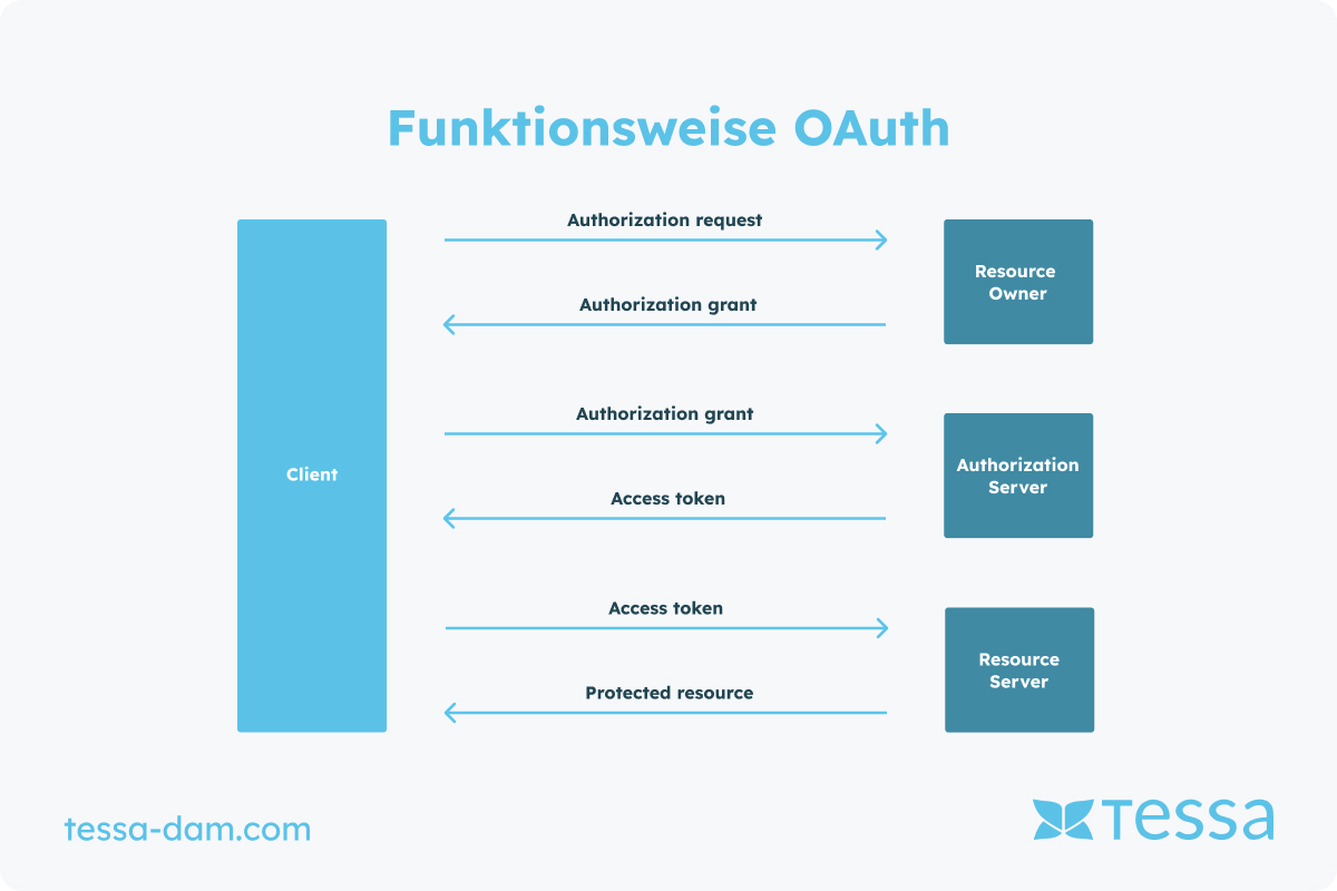 Der Ablauf eines OAuth-Prozesses kann in mehrere Schritte unterteilt werden, die in einer typischen Anwendung wie folgt ablaufen: