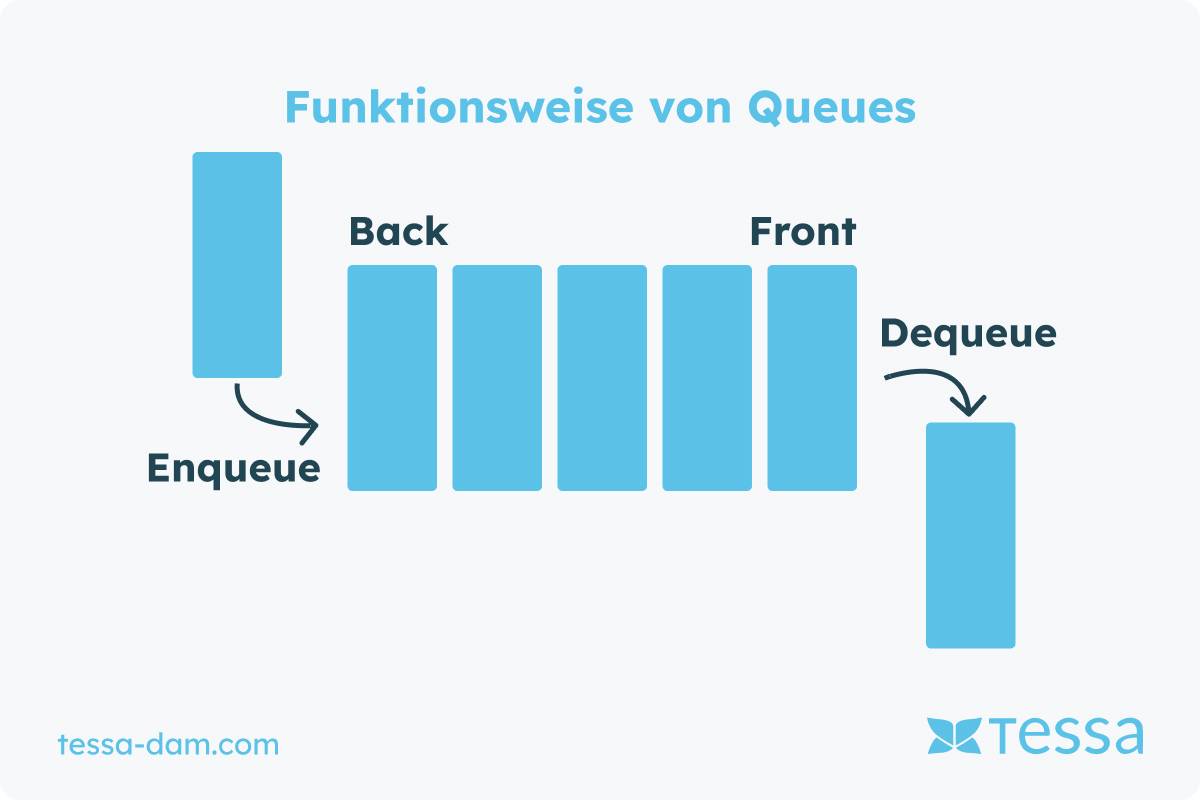Die Funktionsweise von Queues ist von grundlegender Bedeutung für ihr Verständnis. Elemente werden am Ende der Warteschlange hinzugefügt (enqueue), während sie am Anfang entfernt werden (dequeue). Dieser einfache, aber effektive Mechanismus gewährleistet, dass Elemente in der Reihenfolge ihrer Ankunft abgearbeitet werden, was besonders in zeitkritischen Anwendungen von Bedeutung ist.