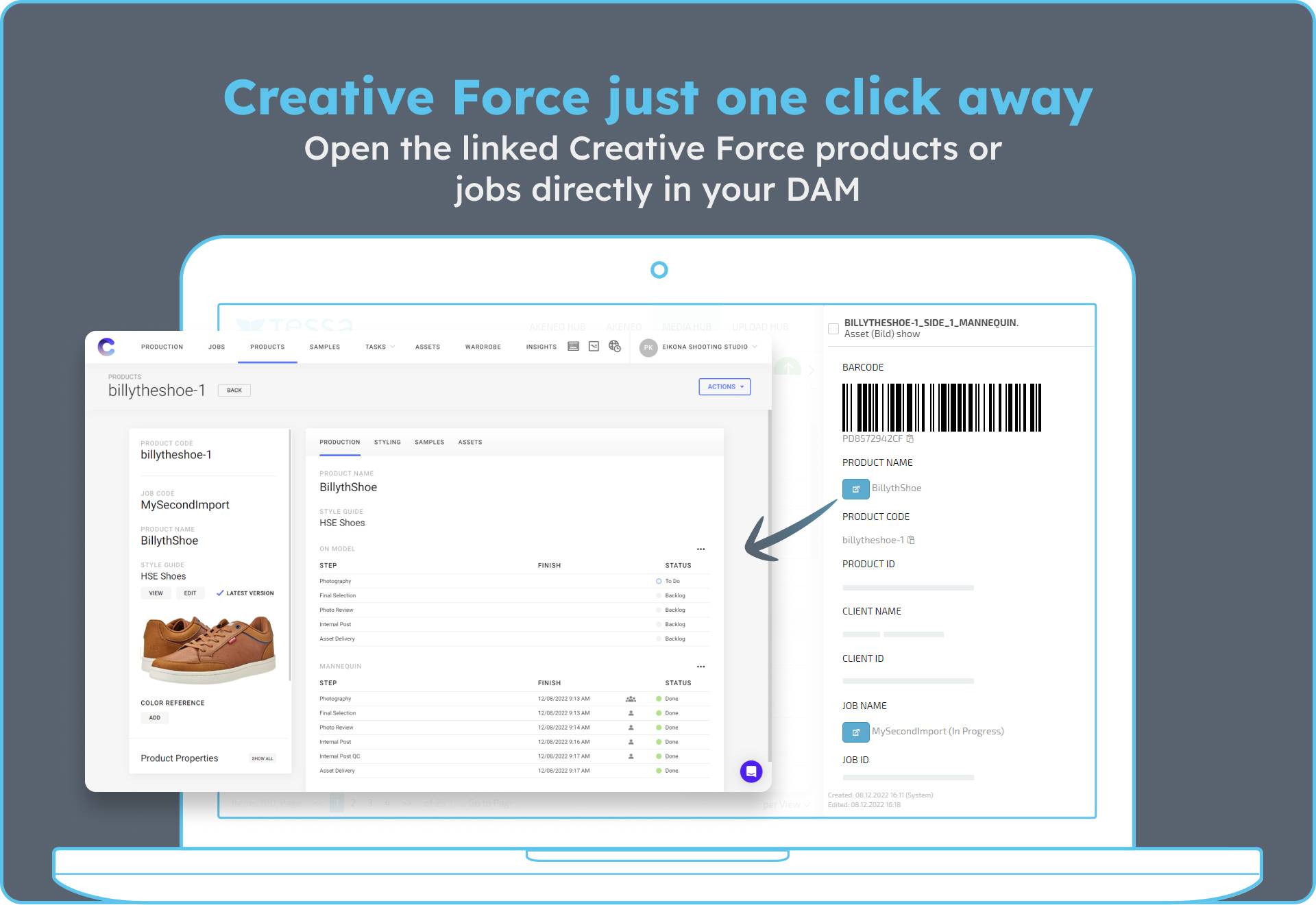 Connect TESSA Digital Asset Management with Creative Force studio management software. Creative Force simplifies and automates photo and video production in e-commerce.