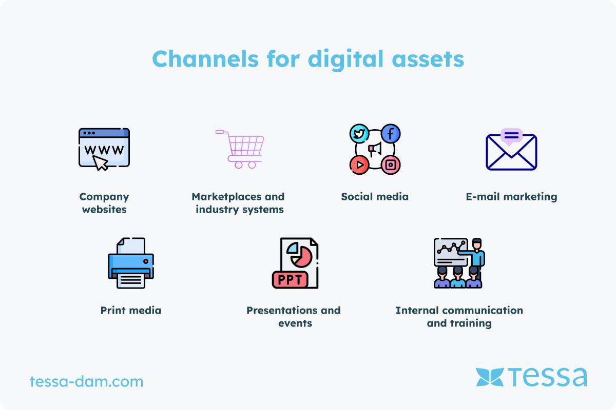 Now that you know the various roles and departments involved in acquiring and creating images and documents, it’s time to look at the target systems where these digital assets should be placed and used. Efficient utilization and placement of your digital content are crucial for the success of your marketing and communication strategies. Here are the main target systems and uses for your assets: