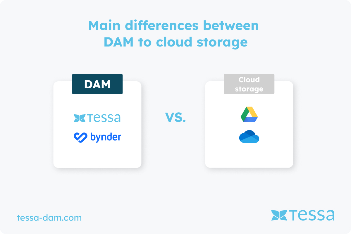 As you have just learned, digital asset management (DAM) and cloud storage are two different approaches to managing digital content, each with specific features and functions. The main difference between DAM and cloud storage lies in their purpose and functionality.