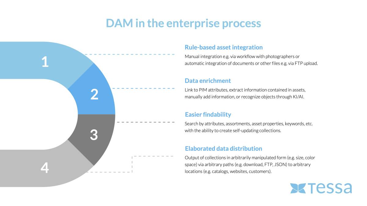 Processes need to be automated and optimized to cope with these increased demands. Modern digital asset management systems such as TESSA are extremely helpful in this context.
