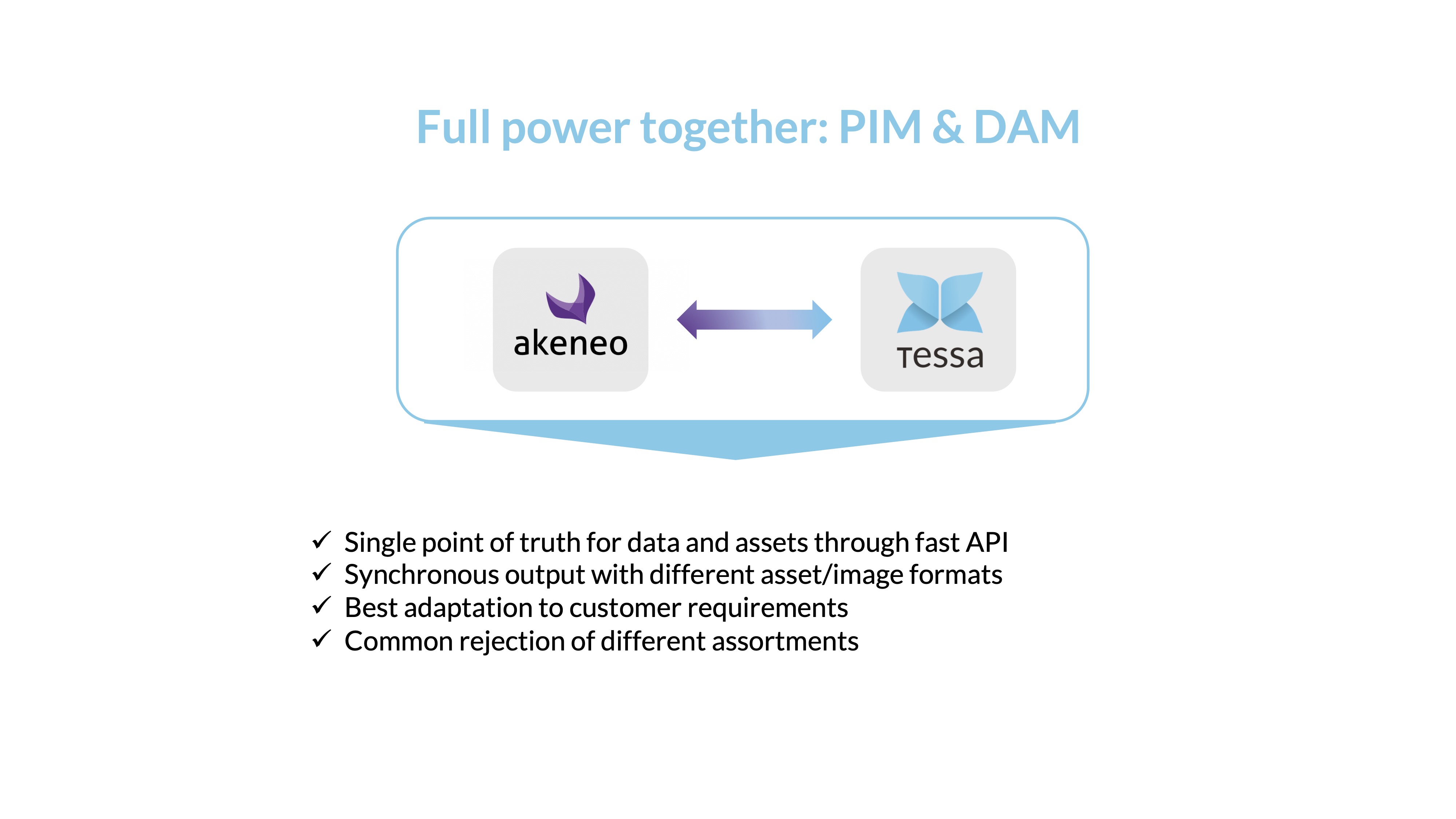 However, the prerequisite for these advantages, which should not be underestimated, is the harmony of both systems. They must work well together. If something changes in the DAM, the PIM must know about it quickly. The reverse is also true, of course! With the TESSA DAM and the Akeneo PIM, this is clearly the case. With Akeneo version 5, the API has gained even more speed. This makes update processes a breeze, even with large amounts of data. The systems run stable and secure hand in hand and with EIKONA Media you have the partner who knows both systems very well and adapts them exactly to your needs.