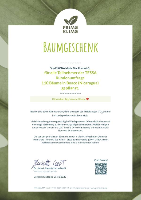 Thanks to the high participation in the survey, we have now donated 110 trees. These trees will continuously filter CO₂ from the atmosphere in the future, contributing to cleaner air. Trees are an essential factor in the fight against the global climate crisis.