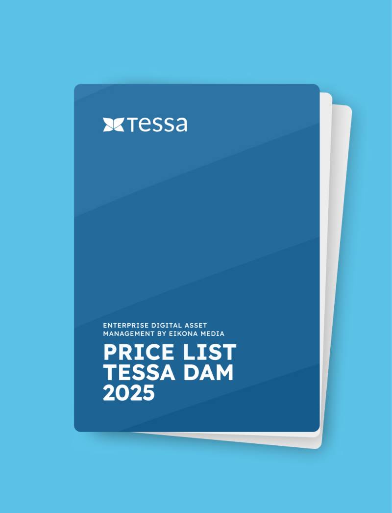 Pricing for TESSA DAM varies depending on the chosen plan: Professional, Business, or Enterprise. Each plan offers different features such as hosting, storage, users, web portals, and integrations. Prices start at 500 EUR per month and increase based on the desired edition. For further information or consultation, please book a demo.