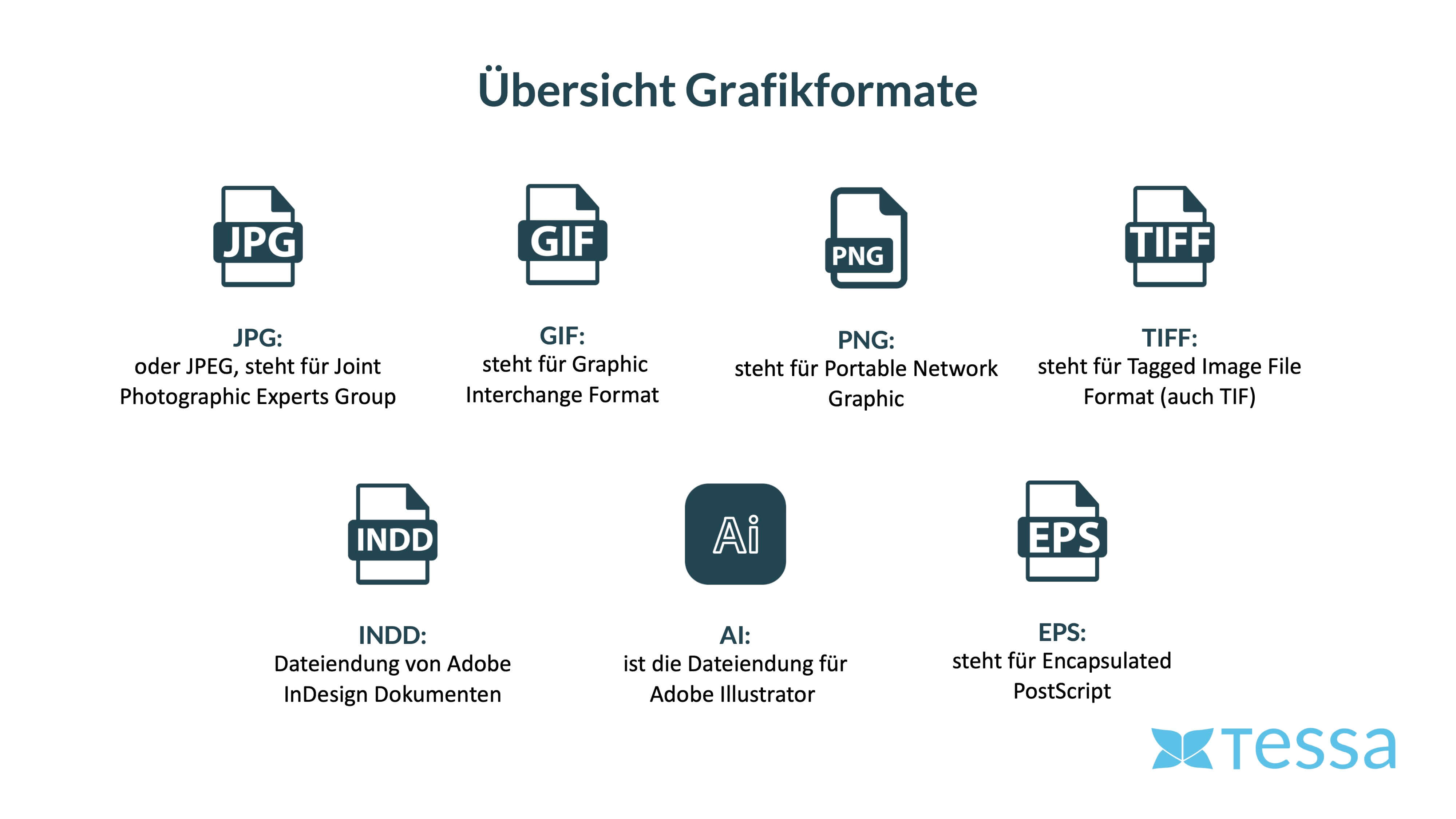 In principle, all graphic formats can be stored and managed in a Digital Asset Management (DAM) system like TESSA DAM. To achieve this, the allowed file extensions are configured in TESSA DAM, such as GIF, JPG, JPEG, SVG, PNG, EPS, AVIF, AI, INDD, and others. This means that file formats beyond graphic formats, such as DOC, XLS, XLSX, etc., can also be stored in a DAM. With the DAM, it is also possible to convert graphic formats and adjust the results to the desired size.