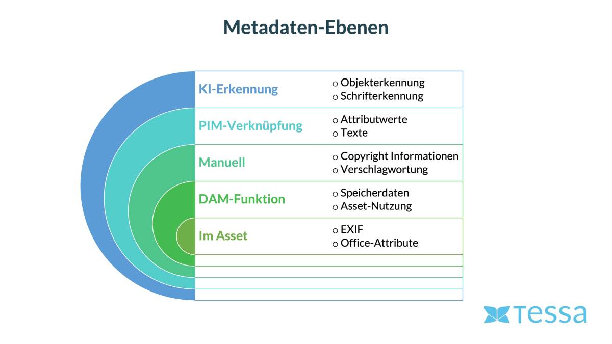 Metadata are data about data. The term "meta" comes from the Greek language and means "beyond" in our context. These metadata define the characteristics of a data object. In the case of Digital Asset Management (DAM), this pertains to the properties of an asset, which is a file. Metadata can be: