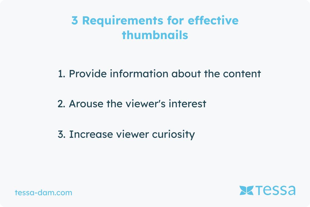 The thumbnail should provide an overview of the content of the video so that the user knows what it is about.